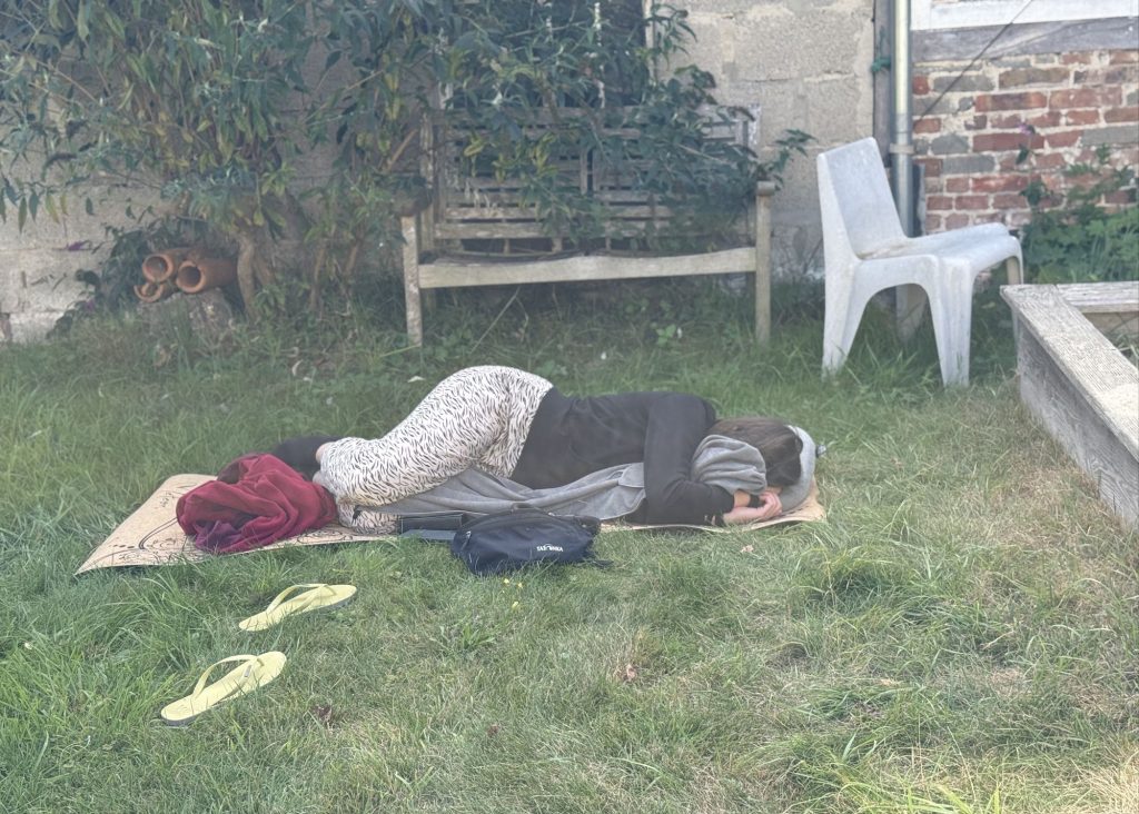 Also, warum Horror? Weil ich eine Spinnenphobie habe. Der alte Kotten ist die meiste Zeit des Jahres nicht bewohnt, oder, sagen wir, nicht von Menschen. Ich kam zwar vorbereitet mit einem Handstaubsauger (es wurde keiner Spinnen etwas zuleide getan), aber nicht vorbereitet auf das Ausmaß meiner Phobie. Also lag ich abends auf der Matratze in dem ausgebauten Heuboden, versuchte mich in den Schlafsack zu kuscheln und zu schlafen, die Zimmerdecke in Kriechhöhe über mir, frisch von allen Langbeinern befreit. Leider war ich bei der Befreiungsaktion dabei, und ich glaube, das war der Fehler. Jedes Mal, wenn sich meine müden Lider schlossen, blitzten vor meinem inneren Auge lange Beine und schwarze Körper. Sie sind direkt über meinem Kopf, und sie fallen auf mich. Das war mein Gefühl. Und zack, war ich wieder wach. Das ging stundenlang so, bis mein verzweifelter, erschöpfter Geist nach mehreren Einschlafmeditationen und Podcasts aufgab und mir doch noch vier Stunden Schlaf gegönnt wurden.